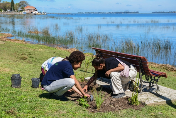 El viernes se realizó la plantación participativa de nativas en los canteros de lo que será el Paseo del Biguá, un espacio en homenaje a nuestro ave emblema.