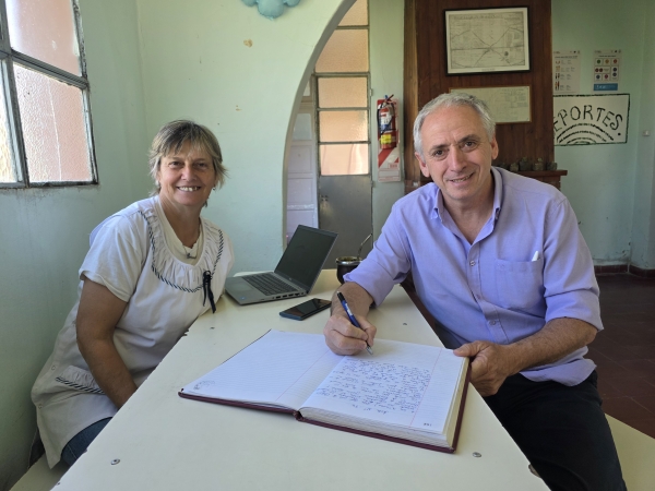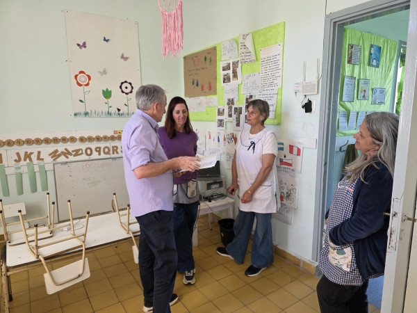 Durante la visita, Gastón entregó un subsidio que será destinado a tareas de pintura y mejoras edilicias, en el marco de los preparativos para la celebración del centenario de la institución.