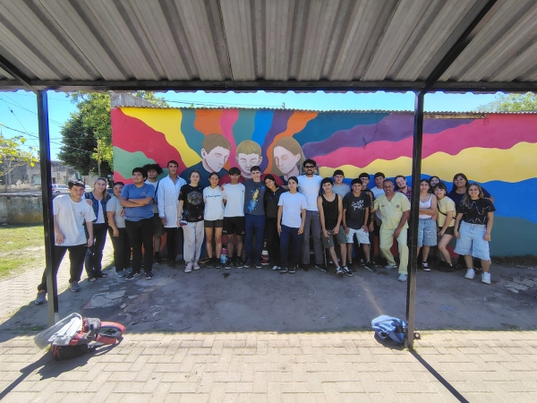 Estudiantes de 6to A y C de la Escuela Secundaria Municipal Eloisa González Soler realizaron un mural en el marco de la materia Proyecto de Producción en Artes Visuales, de la Orientación en Artes Visuales, acompañados por los profesores Rafael Aldatz y Mariela Xiong