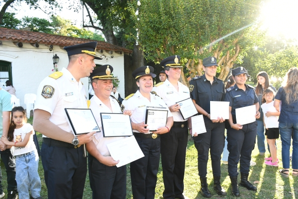 Durante la ceremonia, realizada en los jardines del Museo Pampeano, los agentes y jefes de la Policía Comunal y de las dependencias que tienen sede en Chascomús fueron reconocidos por su compromiso y dedicación en la protección y seguridad de los ciudadanos.