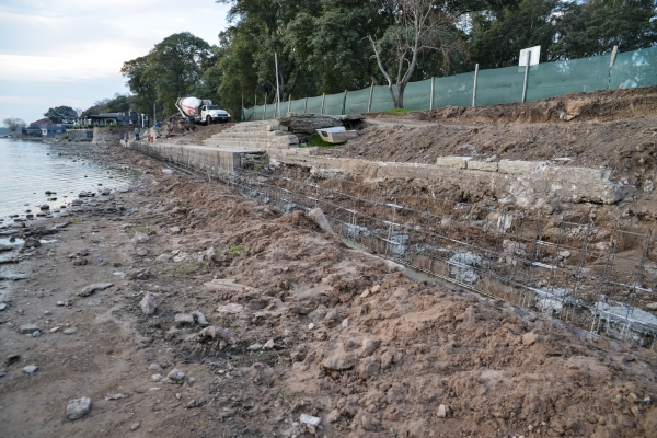 La obra está a cargo de la GyC Construcciones, ganadora de la licitación pública Nº 14/22, y consiste en recuperar la muralla de piedra y reconstruir las escalinatas de hormigón en el tramo frente al Parque de los Libres del Sur, desde la avenida Lastra hasta el espigón de pesca "Domingo F. Cazaux".