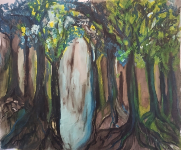En dicha propuesta de Muestra - Instalación se propone a través de la pintura, la experiencia de trasladarse a un bosque; recorrerlo, sentir el abrazo, el miedo, la calma y la expectativa que produce entrar en contacto con la naturaleza.