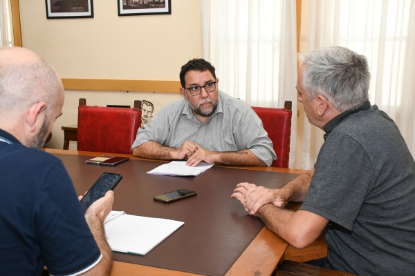 El intendente Javier Gastón, acompañado por el secretario de Hacienda Juan Facundo Alfonsín, recibió en su despacho al gerente de la sucursal local del Banco Provincia, Edgardo Blanco.