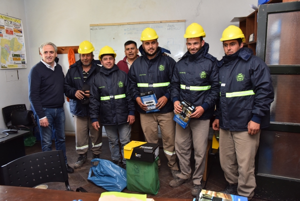 El intendente junto al Secretario de Obras Públicas Alejandro Arias, dialogaron con los trabajadores municipales a los que les brindaron la nueva ropa y herramientas, que consta de calzado, pantalón, camisa, campera, faja de seguridad y casco correspondiente.