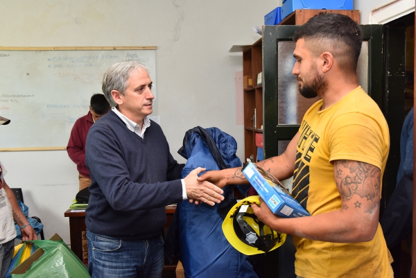 En la tarde de ayer, el Intendente Municipal se hizo presente en la Secretaría de Obras Públicas para entregar la nueva indumentaria de trabajo a los integrantes de la cuadrilla que llevarán adelante las tareas de extensión de gas natural en el barrio 30 de Mayo.