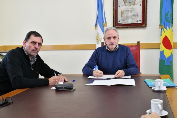 La firma del acuerdo se llevó a cabo en el despacho comunal durante la mañana y contó con la presencia de varios representantes sindicales y municipales.
