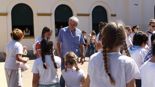 Durante el recorrido Javier Gastón felicitó a los docentes y conversó con los alumnos que le contaron el trabajo previo que realizaron en conjunto para transmitir y mostrar en este día tan especial.