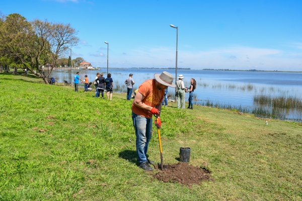 El viernes se realizó la plantación participativa de nativas en los canteros de lo que será el Paseo del Biguá, un espacio en homenaje a nuestro ave emblema.