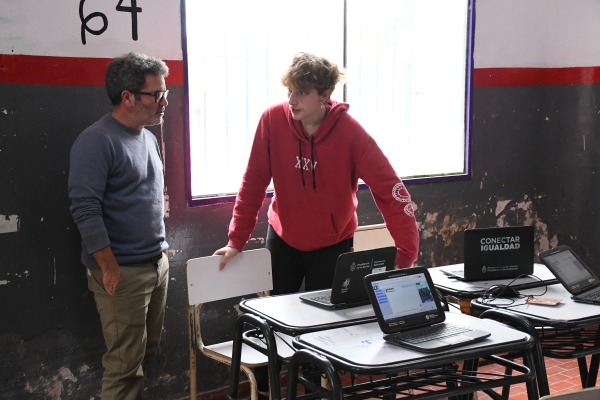 Durante la visita estuvo acompañado por el secretario de Recursos Humanos y Modernización, José Yezza Ross. Ambos dialogaron con los alumnos y docentes que expusieron las distintas iniciativas, entre ellas las prácticas profesionalizantes que se llevan adelante en el marco del programa META.