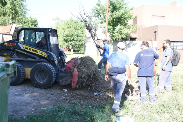 Las mismas están a cargo de personal de Higiene Urbana de la secretaría de Obras, Servicios Públicos y Ambiente, con la utilización de camiones y pala mecánica, de manera de favorecer el ritmo de los trabajos, dado que son importantes los volúmenes de residuos que se deben retirar de la vía pública.
