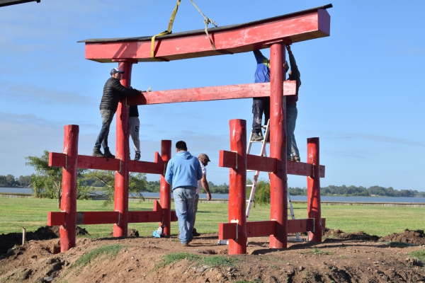 Durante los últimos días, personal municipal se encuentra llevando adelante los trabajos finales de instalación del Torii, arco tradicional japonés, emplazado en Avenida Costanera Pedro Gastón.