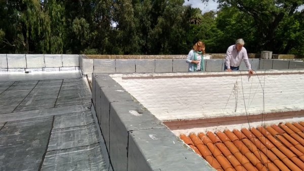 Entre otras acciones de acondicionamiento, se lleva adelante la reparación de techos para evitar posibles filtraciones en las distintas salas.