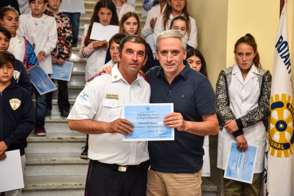 De la jornada participaron autoridades del Rotary Club, Bomberos Voluntarios, miembros de las fuerzas de seguridad, Defensa Civil, alumnos, familiares y docentes, entre otros.
