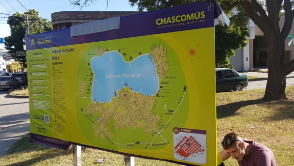 Se trata de carteles con el mapa de la ciudad y la referencia correspondiente, que detalla los diferentes atractivos turísticos, naturales, culturales, recreacionales, entre otros; ubicando al visitante. Además se brindan recomendaciones para el cuidado de los espacios públicos y laguna.