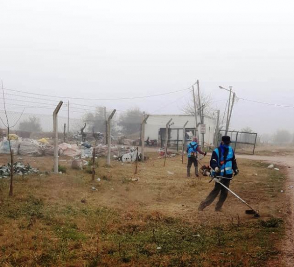 Los operarios realizaron tareas de barrido y retiro manual de desechos, desmalezamiento y corte de pasto en general en frentes y banquinas, con el retiro de basura dispersada en los zanjones.