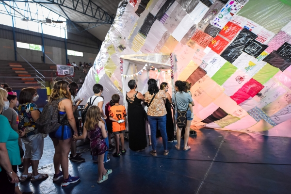 La obra fue expuesta este lunes en el gimnasio del Instituto Corazón de María, donde los artistas de la Orquesta Escuela de Chascomús brindaron una presentación de distintas obras reconocidas con instrumentos de cuerdas y vientos.