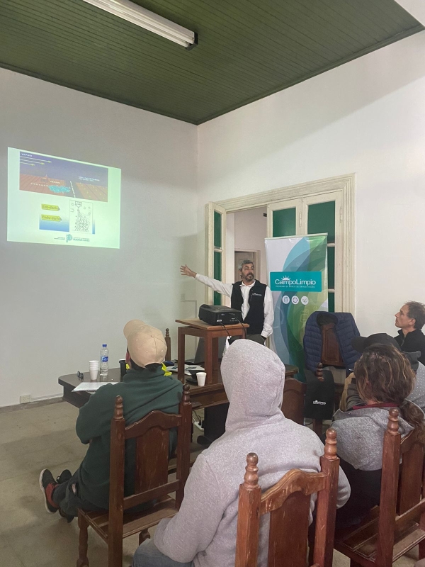 Finalmente, un capacitador habilitado por el ministerio expuso sobre buenas prácticas agrícolas, tecnologías de aplicación, finalizando la jornada con una práctica de calibración de equipos pulverizadores y la evaluación de los presentes.