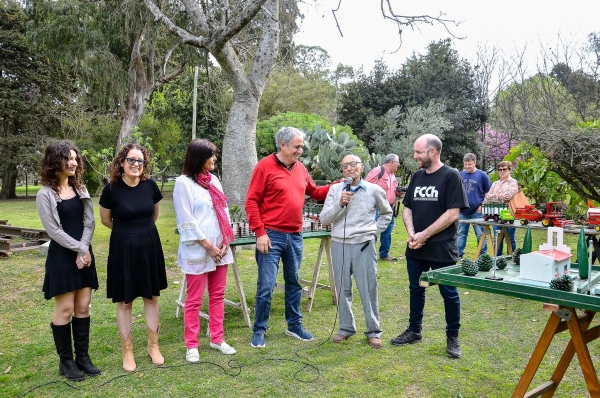 Javier Gastón junto al subsecretario de Cultura, Patrimonio y Gestión Comunitaria, Pablo Nápoli, felicitó y conversó con el autor de las obras, quien desde los 7 años realiza réplicas de mangas, tranqueras, establecimientos rurales de los años 1930 a 1970 y maquinaria agrícola desde aquellas tiradas por caballos, hasta las cosechadoras de la década de 1940.