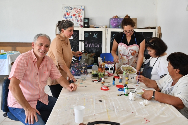 El Intendente Municipal, visitó el lunes pasado a las alumnas y a la docente del taller de pintura decorativa del barrio El Porteño perteneciente al programa Cultura Viva Comunitaria.