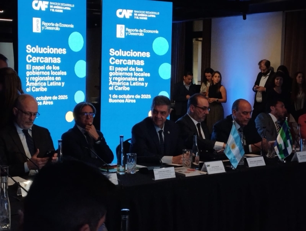 El intendente Javier Gastón asistió a la presentación del Reporte de Economía y Desarrollo (RED) 2025 del Banco de Desarrollo de América Latina y el Caribe (CAF), que tuvo lugar en la ciudad de Buenos Aires bajo el lema “Soluciones cercanas”.