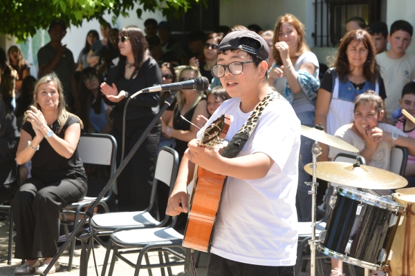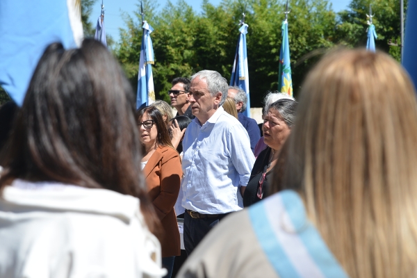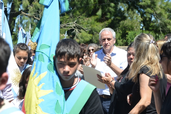 El intendente Javier Gastón estuvo presente durante el acto, que reunió a representantes educativos, veteranos de la guerra de 1982 y vecinos.